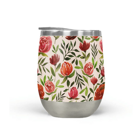 Burgundy Watercolor Floral Stemless Wine Tumbler