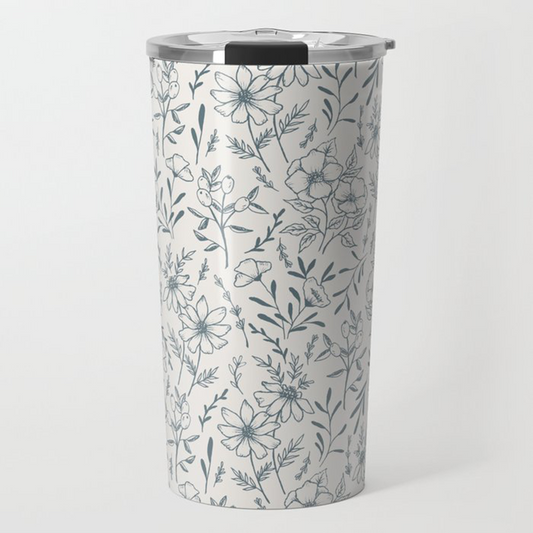 Blue Ink Floral Travel Coffee Mug