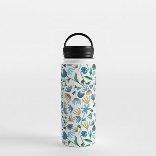 Blue Ink Floral Handle Lid Water Bottle