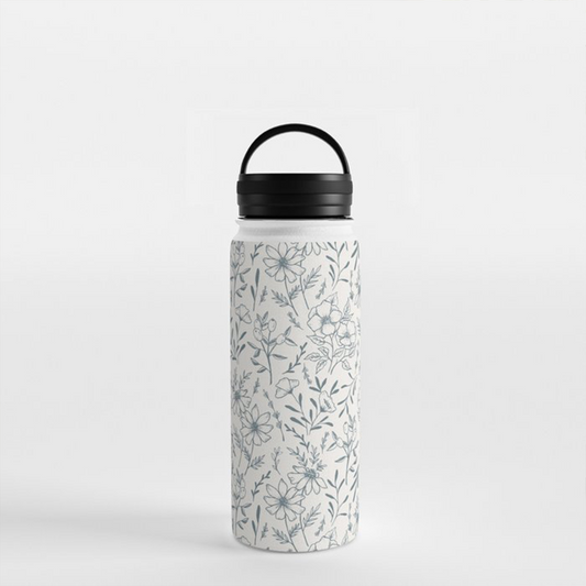 Blue Gray Flower Handle Lid Water Bottle