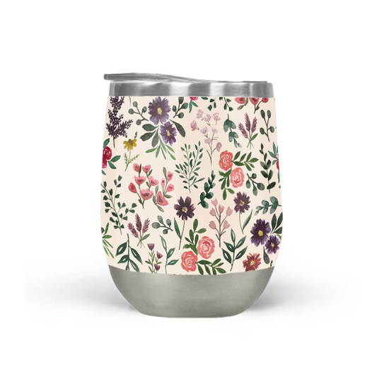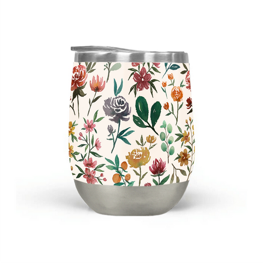 Colorful Watercolor Flowers Stemless Wine Tumbler