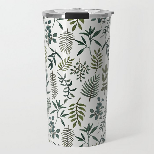 Purple Flowers and Eucalyptus Leaves Stemless Wine Tumbler